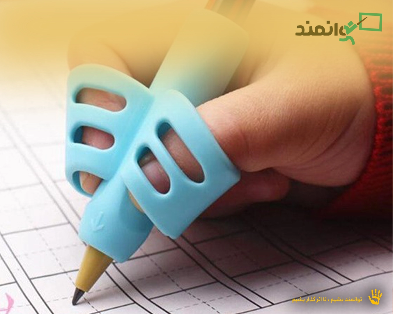 اگر مفاصل و ماهیچه‌های دست کودک در نوشتن زود خسته شده و یا نمی‌تواند مداد را به خوبی کنترل کند، شما می‌توانید از ابزارهای کمکی برای نوشتن (مانند شکل زیر) که محورهای صخیم‌تری دارند استفاده کنید. این کار باعث می‌شود که کودک، مداد را با خستگی کمتر گرفته و کنترل کند.